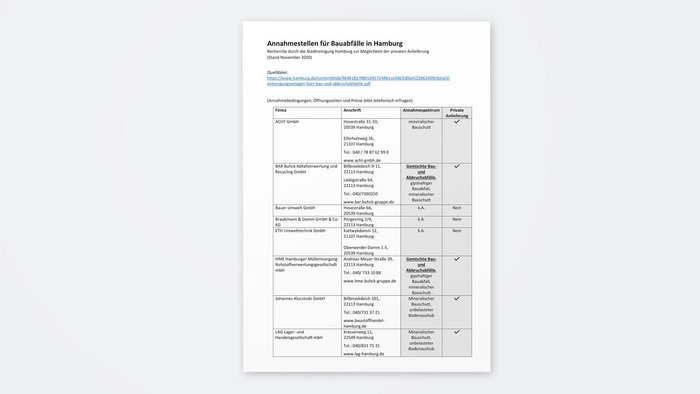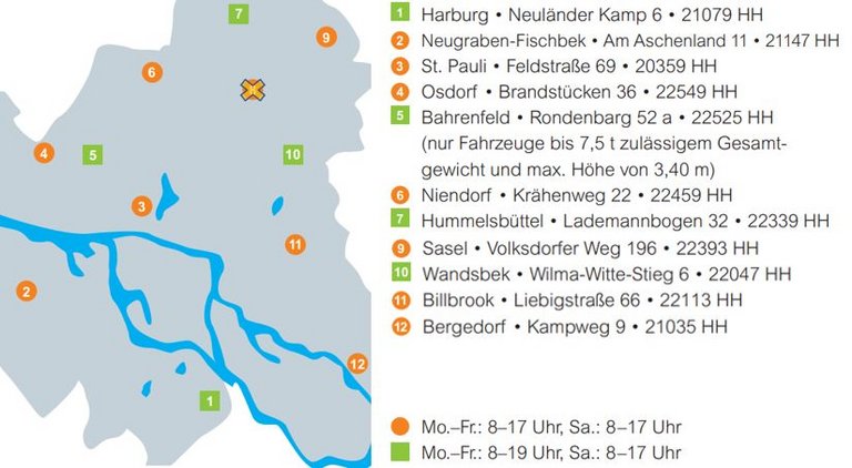 Recherche durch die Stadtreinigung Hamburg zur Möglichkeit der privaten Anlieferung.