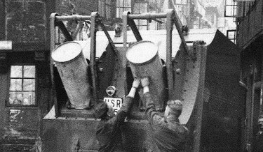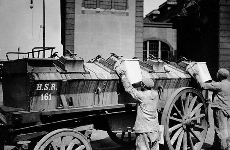 Mit solchen Abfuhrwagen mit Eimerumleersystem wurde in Hamburg die staubfreie Müllabfuhr eingeführt.