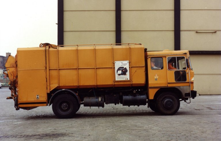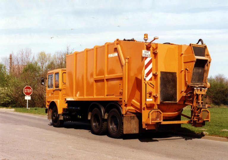 Faun-Haller-Müllwagen, Ladekapazität: 13 Kubikmeter.