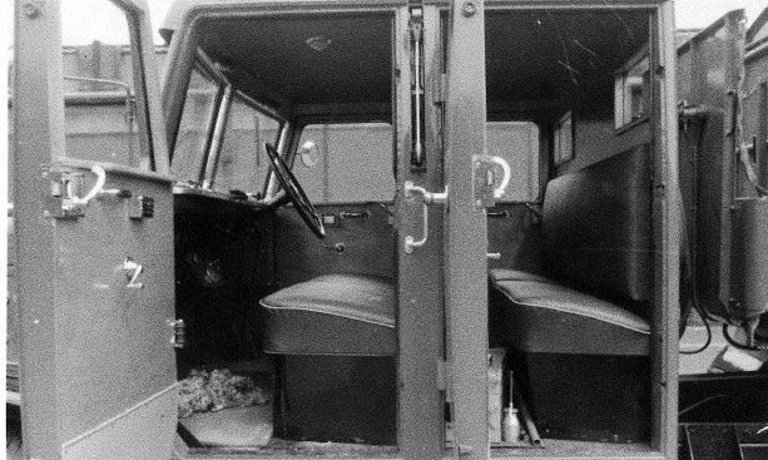 Führer- und Mannschaftsraum eines Faun-Haller-Müllwagens.